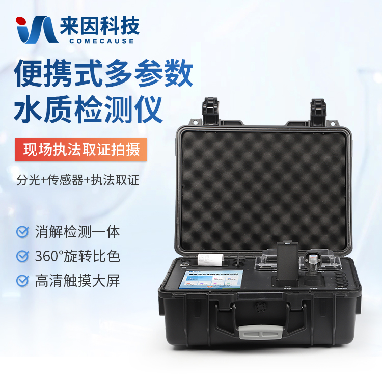 便携一体式多参数水质检测仪采用高强度PVC工程塑料手提箱设计,消解检测一体式设计,其中消解模块具备双温区功能,检测部分同时具备360°旋转比色管检测和比色皿检测,安卓智能操作系统,8英寸高清液晶触摸屏,光纤检测技术,进口光源,内置大容量锂电池,现场执法取证模块,便携多参数水质检测仪具有性能稳定、测量准确、测定范围广、功能强大、操作简单等特点。